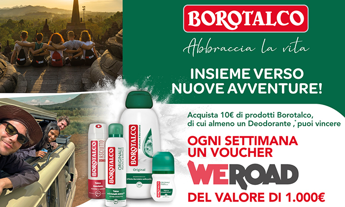 Acquista almeno 10,00 euro di prodotti Borotalco - di cui obbligatoriamente almeno n. 1 DEODORANTE tra quelli riportati nel regolamento e prova a vincere ogni settimana un voucher WeRoad.