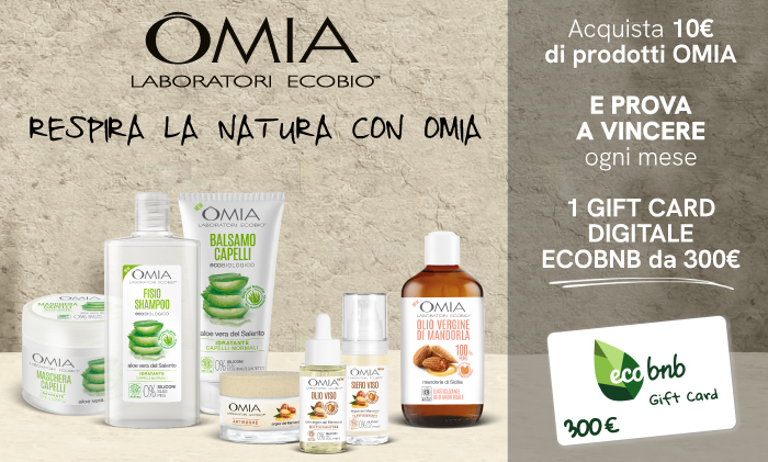 Acquista almeno 10,00 euro di prodotti OMIA e prova a vincere ogni mese una Gift CArd digitale Ecobnb.