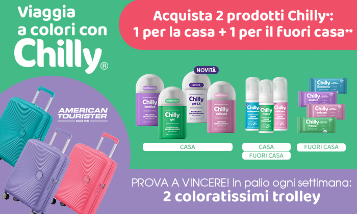 Acquista n. 1 prodotto Chilly per la casa (Tabella A) + n. 1 prodotto Chilly per il fuori casa (Tabella B) e prova a vincere un Trolley da viaggio.