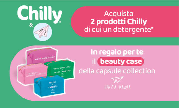Acquista n. 2 prodotti Chilly, di cui almeno un detergente, in regalo per te il beauty case della capsule collection con Linea Daria