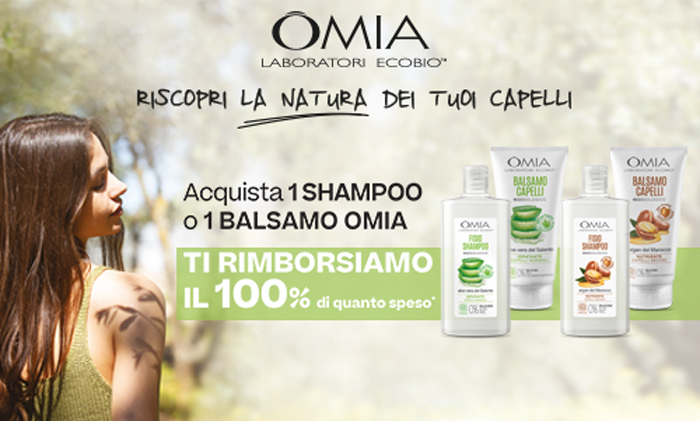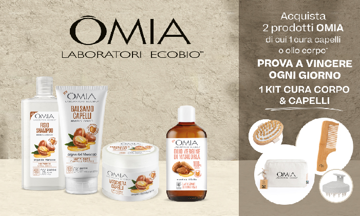 Acquista n. 2 prodotti OMIA - di cui almeno n. 1 CURA CAPELLI o n. 1 OLIO CORPO tra quelli riportati in Tabella A del Regolamento- e prova a vincere uno dei Kit Body & Haircare in palio ogni giorno.