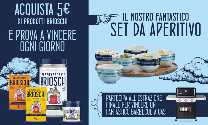 Acquista 5€ di prodotti Brioschi e prova a vincere ogni giorno il set aperitivo.